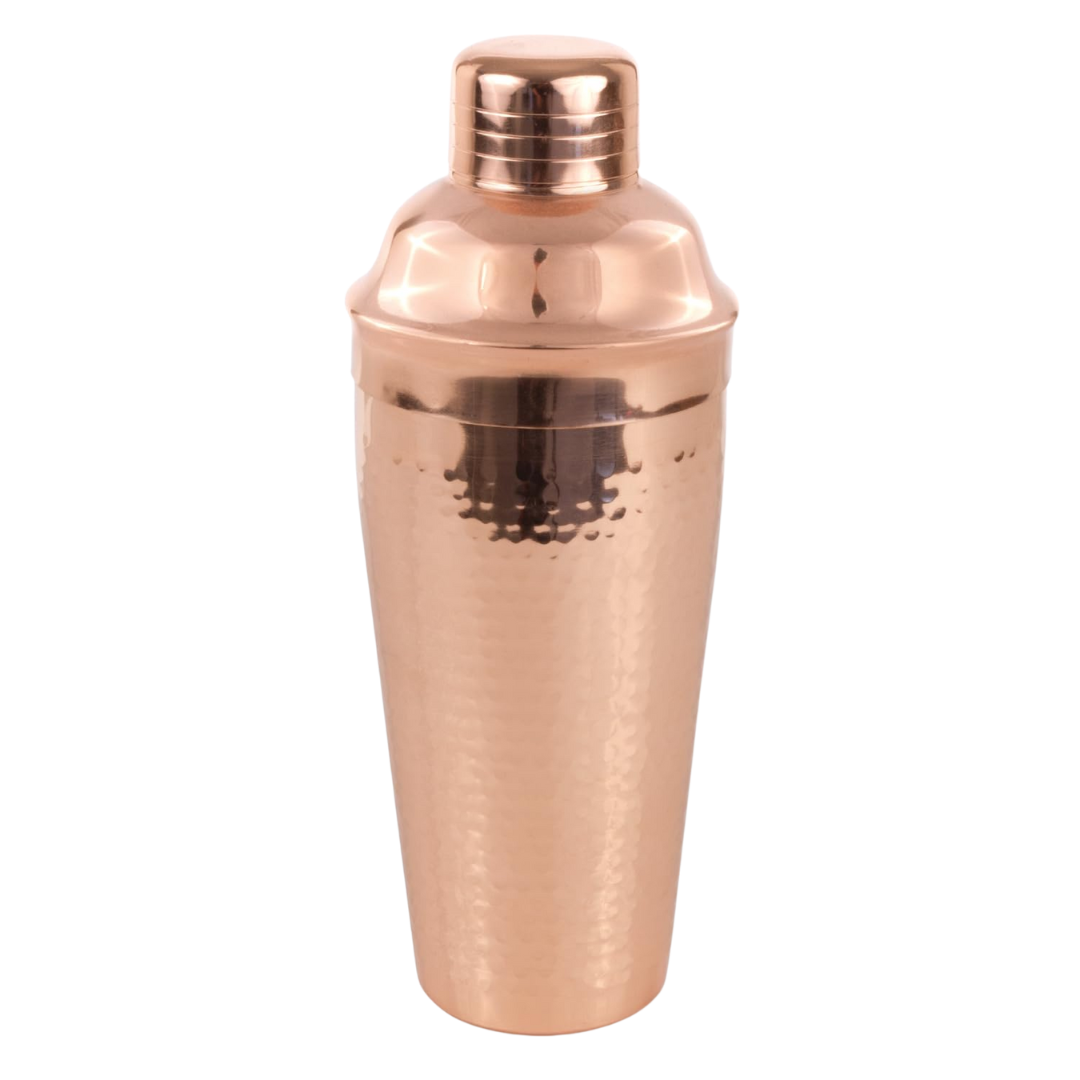 This 25-ounce cocktail shaker brings both elegance and functionality to your bar. It features a hammered copper-finish stainless-steel body, a built-in strainer, and a 1.5 oz